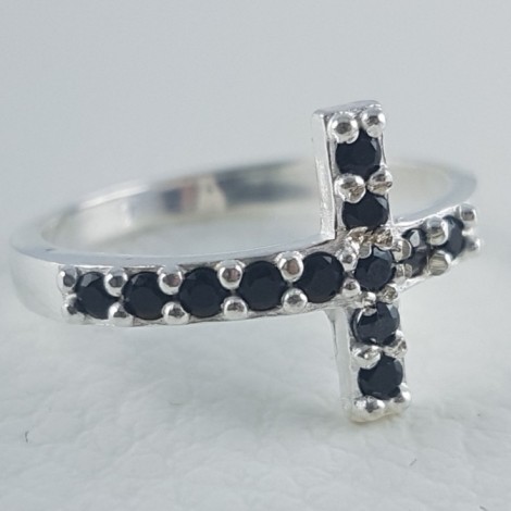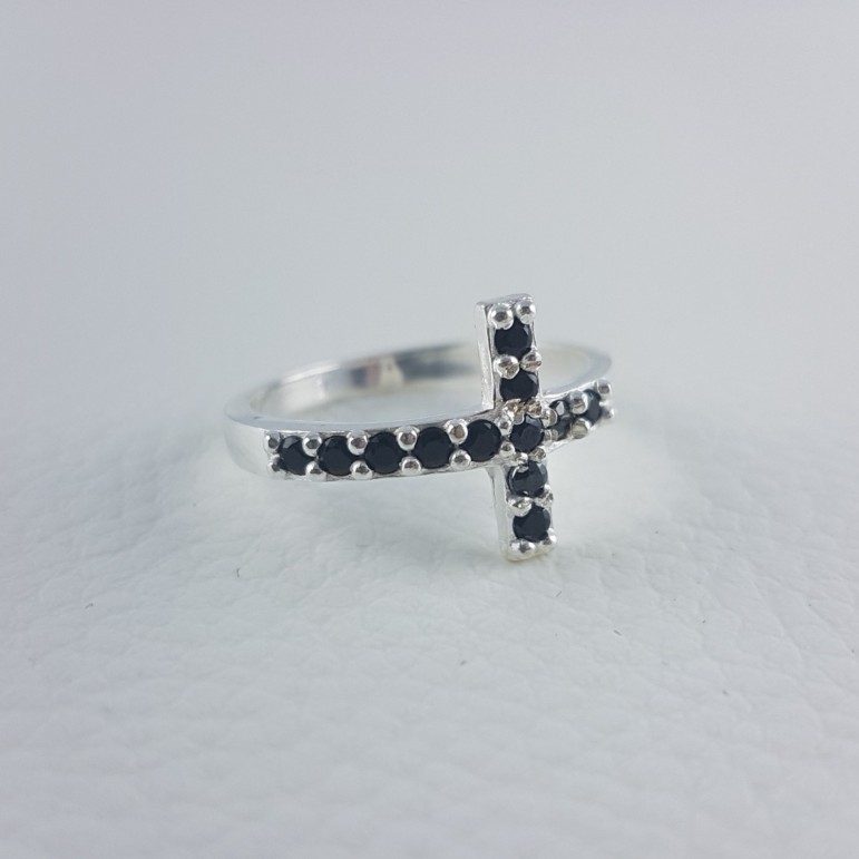 Bague croix en argent 925 avec oxyde de zirconium noir
