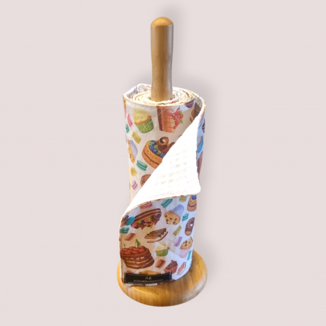 Une face coton et une face nid d'abeille très absorbante. Les feuilles sont liées entre elles avec des pressions.