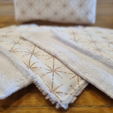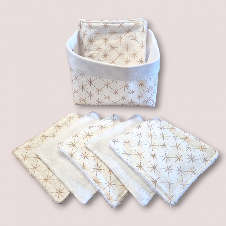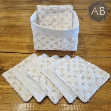 Panier de rangement + 7 Lingettes fait main, lavables et réutilisables en coton et éponge bambou certifiée OEKO-TEX.